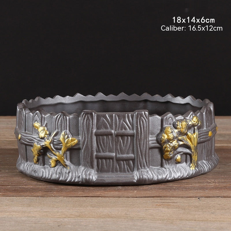 Ceramic Black Purple Sand Orchid Pots Plant Indoor